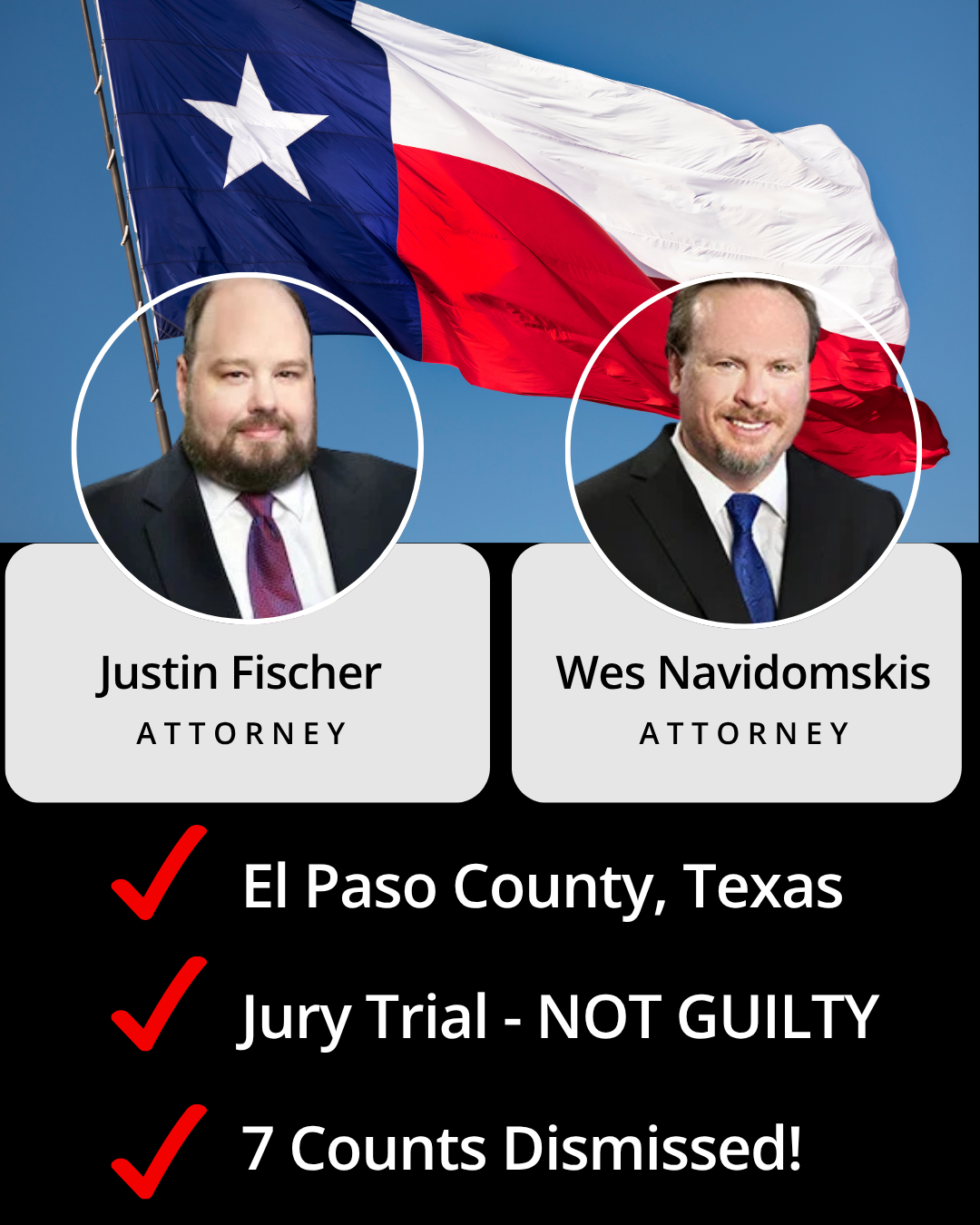 In El Paso County, Texas Wes Navidomskis and Justin Fischer stood up for a client who had carried the weight of serious charges for five years. The State pushed for a 30-year sentence, but our team of criminal defense attorneys showed the jury the full story. Several counts were dismissed, and the jury returned a clear Not Guilty on every charge that remained.