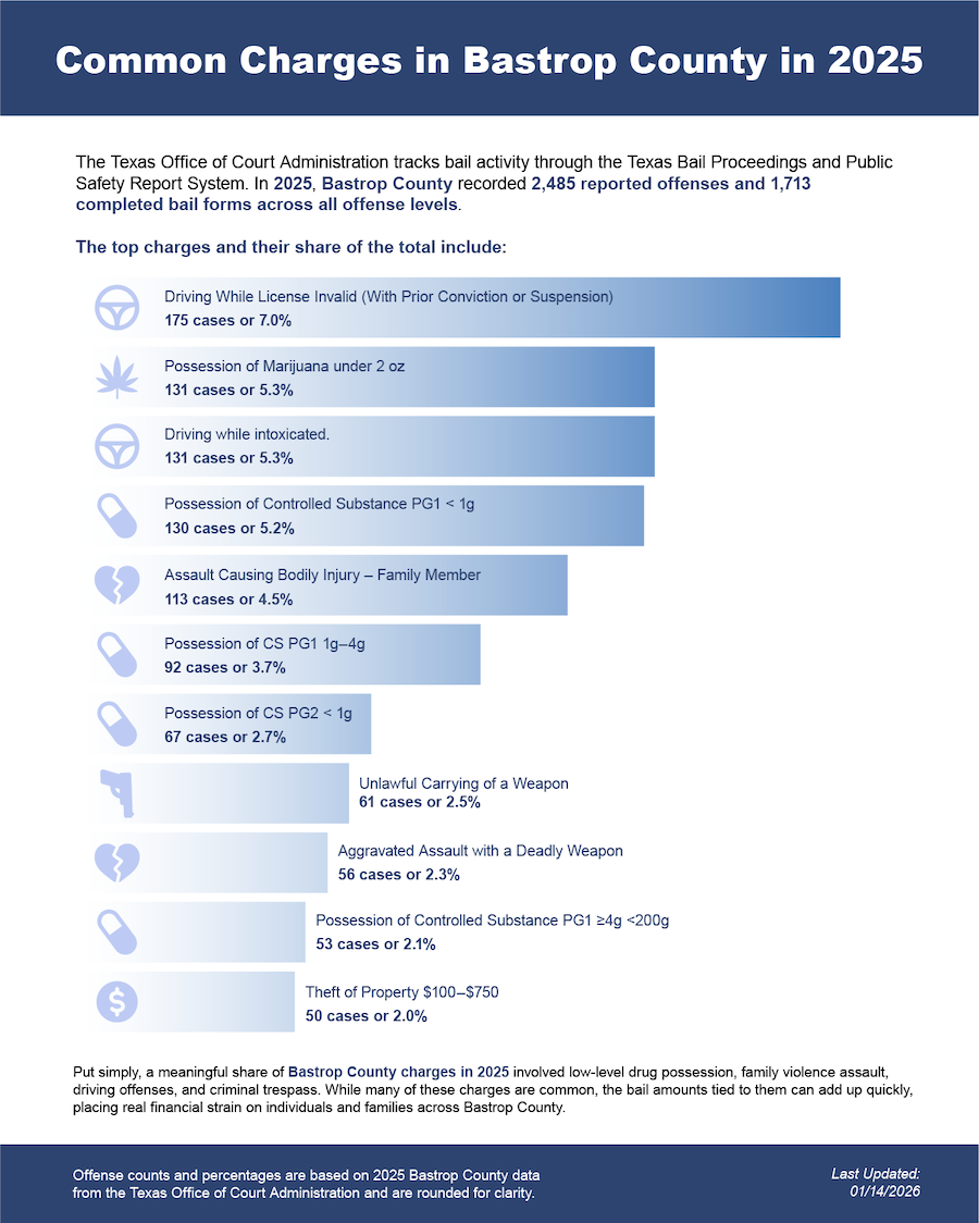 - Determine when a judge sets bail and when a bond will be set in Bastrop County Court.