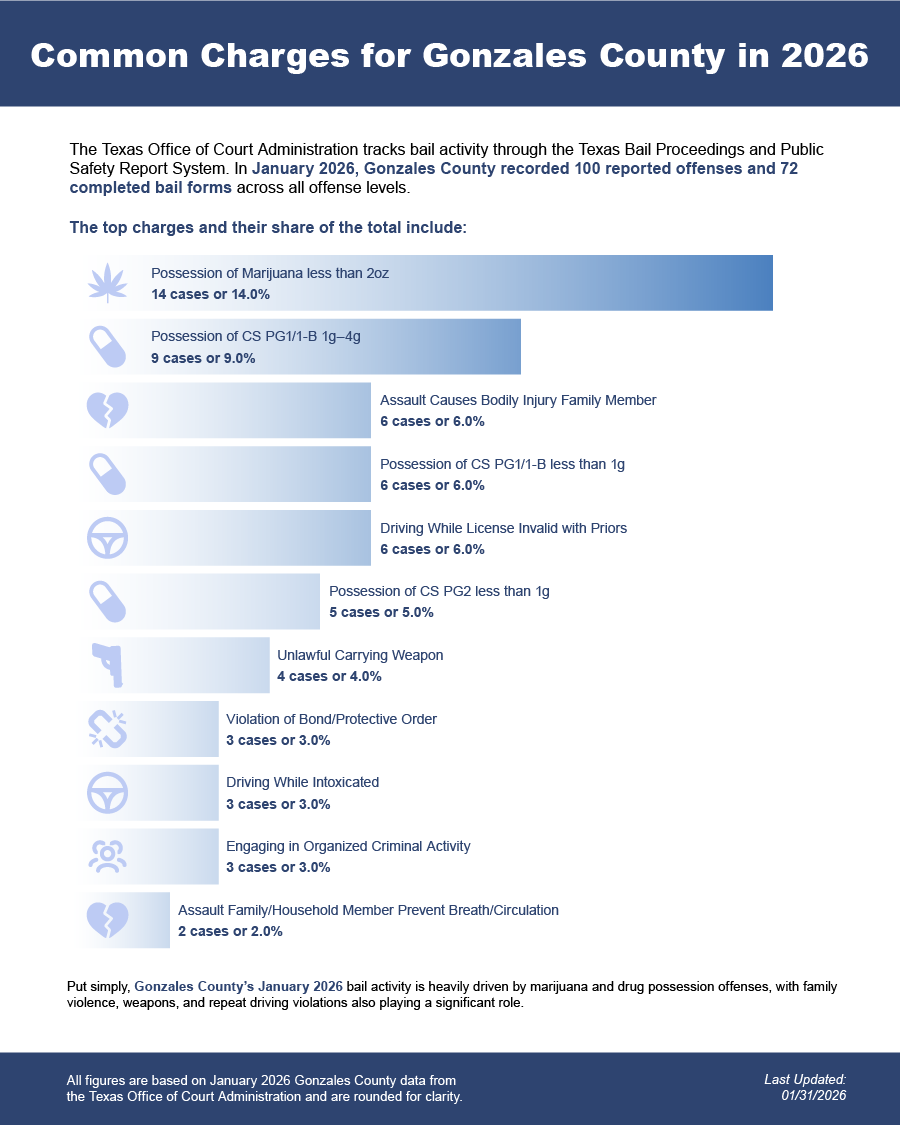 After release, the defendant may return home while preparing for upcoming court appearances and complying with all bond conditions. Failure to meet bond or court requirements may result in bond forfeiture and the issuance of a warrant. Early coordination with criminal defense counsel supports preparation for cases involving DWI, drug offenses, family violence, weapons charges, or other criminal matters in Jones County.
